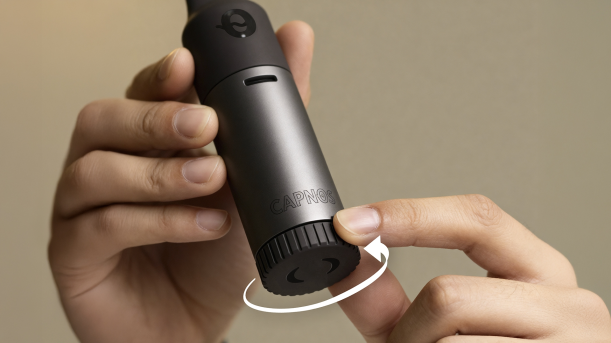 그 이유는 Capnos가 특허 출원 중인 독특한 시스템을 가지고 있어 압축 공기를 이용해 일반 vape에서 느끼는 만족스러운 “목구멍 타격”을 시뮬레이션하기 때문입니다.