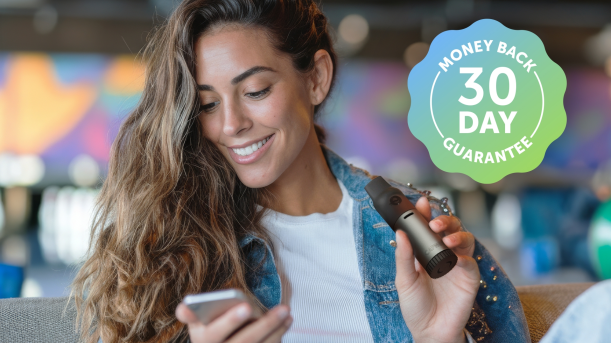 이것은 시도해볼 완벽한 기회입니다 – 만약 마음에 드신다면, 니코틴, 수증기, 연기 없이 진정하는 데 도움을 줄 새로운 가장 친한 친구를 얻게 될 것입니다. 그리고 마음에 들지 않으신다면, 쉽게 반품하고 돈을 돌려받을 수 있습니다.