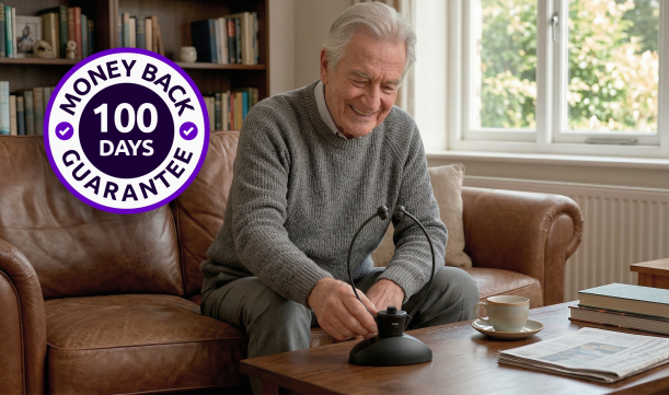 Acha que o fone de ouvido sem fio HearDirect parece bom demais para ser verdade? Bem, a HearDirect tem um desafio para você: experimente por si mesmo! Eles oferecem 100 dias inteiros para usar em casa e sentir a diferença.